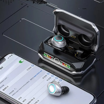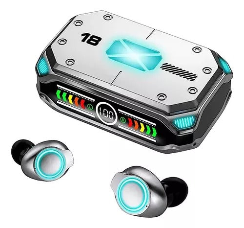 1. Efecto de iluminación RGB y pantalla de potencia: los auriculares compatibles con Bluetooth tienen efectos de iluminación RGB geniales incorporados, función de visualización de energía LED y botón de huella digital. Toque el botón de la huella digital para leer fácilmente el nivel de la batería de la caja de carga, sin preocuparse por el fallo de energía de la caja de carga.