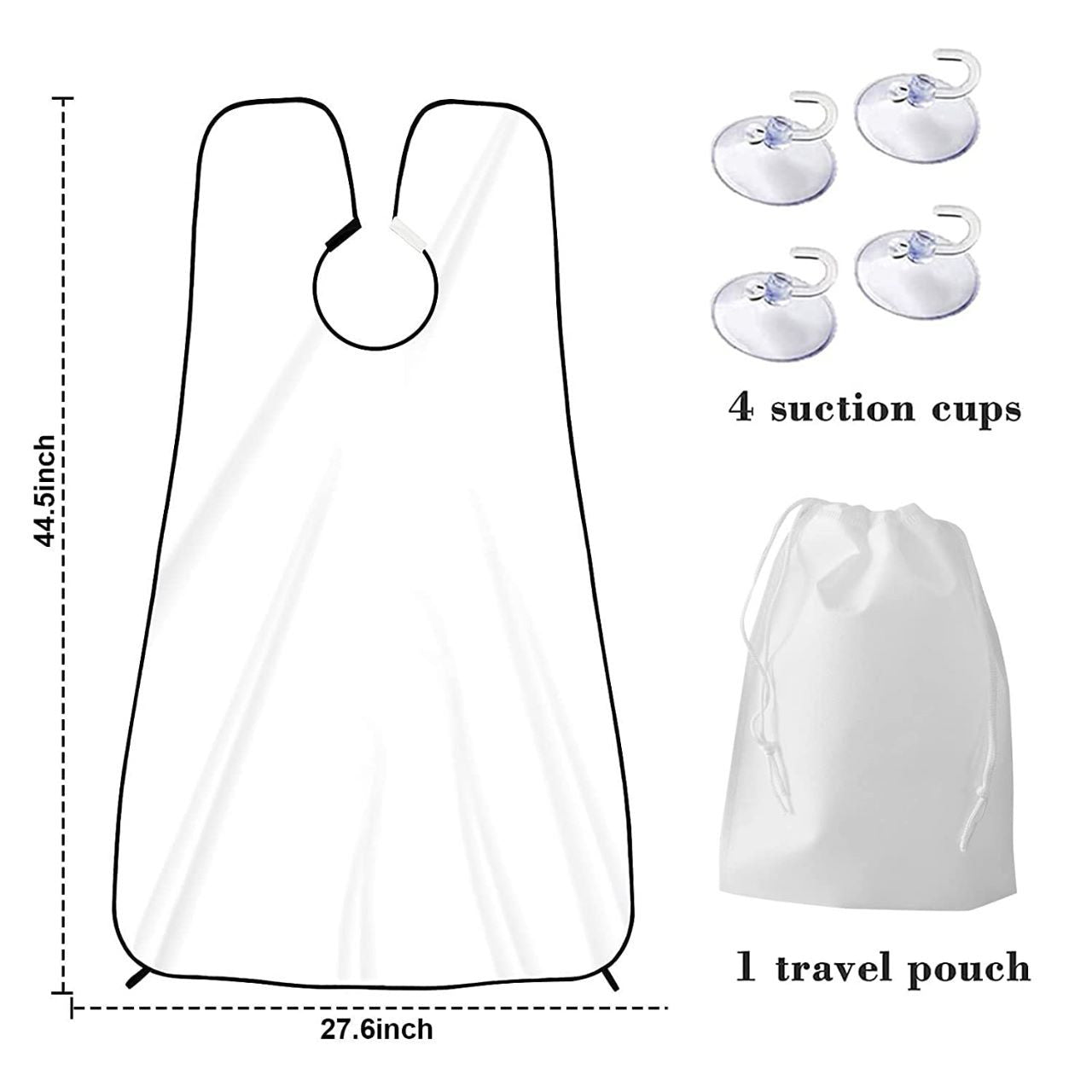 1 delantal para barba, 4 potentes ventosas y 1 bolsa de almacenamiento de viaje.