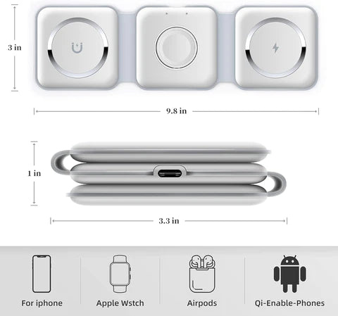 Este Cargador Inalámbrico Magnético 3 en 1 es la solución para mantener todos tus dispositivos cargados sin complicaciones.