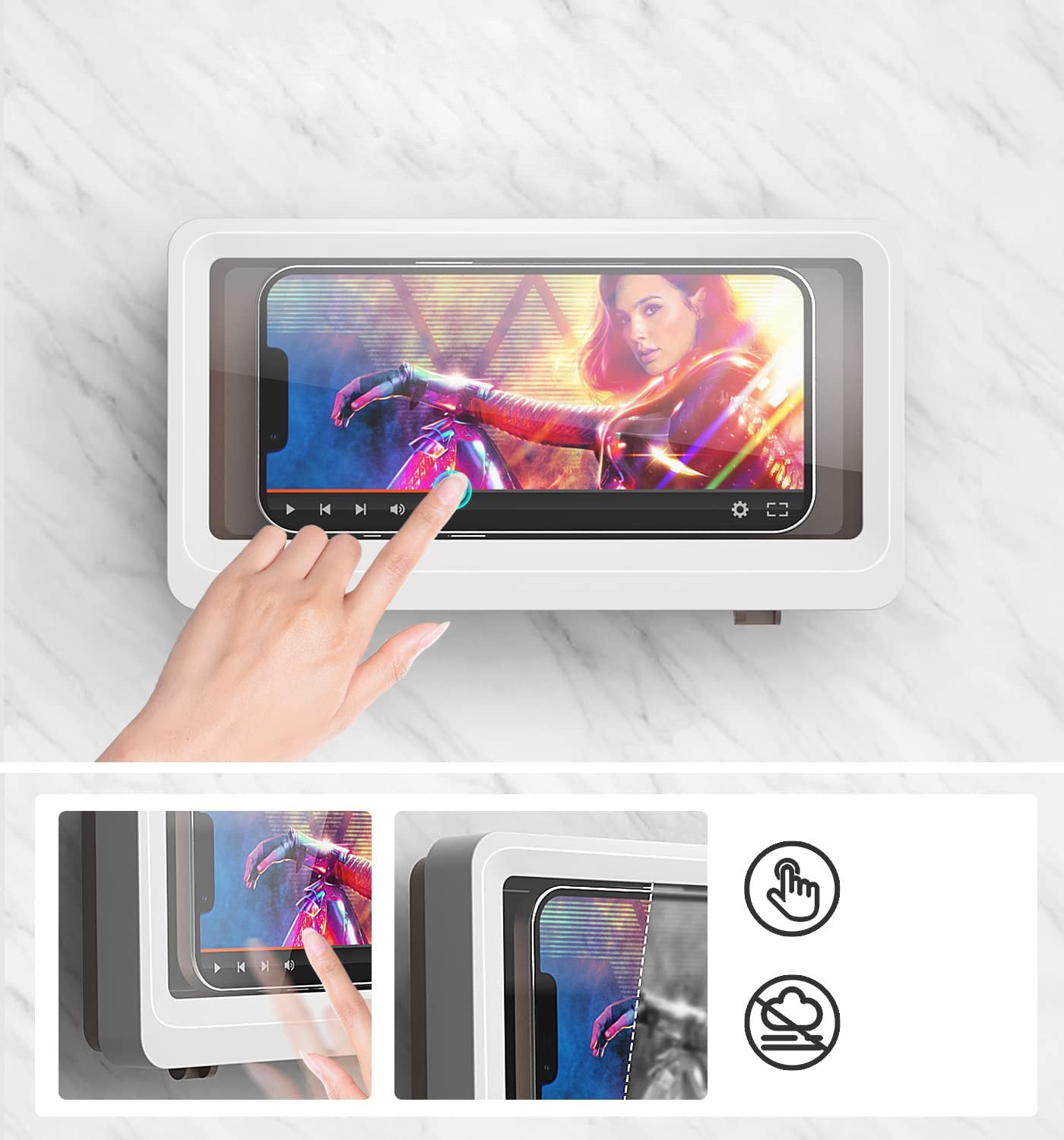 PUEDES INSTALARLO DONDE DESEES, EN TU HOGAREl soporte de pared para teléfono es un buen compañero para su baño, inodoro, bañera, cocina. Puedes escuchar música al ducharte o ver vídeos al cocinar o ducharte.